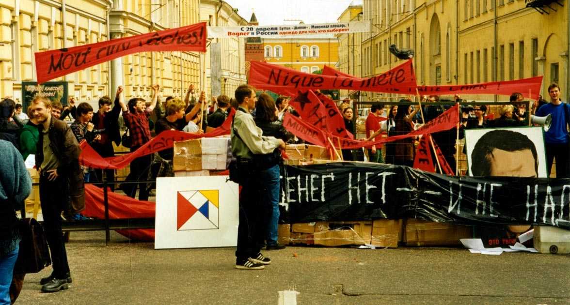 В 1998 году Осмоловский вновь вернулся на улицы Москвы с очередным перфомансом. На этот раз вместе с художником Авдеем Тер-Оганьяном они построили картонную баррикаду, прямо в центре столицы. Приурочен перфоманс был к грянувшему в 1998 году экономическому кризису. Над коробками, которые имитировали заграждения, взмыли транспаранты. Художники требовали, чтобы минимальная заработная плата в России составляла 1200 долларов. Шествие было организовано в стиле французской революции и недвусмысленно намекало на неё. Три часа колонна стояла на одном месте, после чего двинулась в сторону Кремля. Конечно, шествие разогнала полиция.