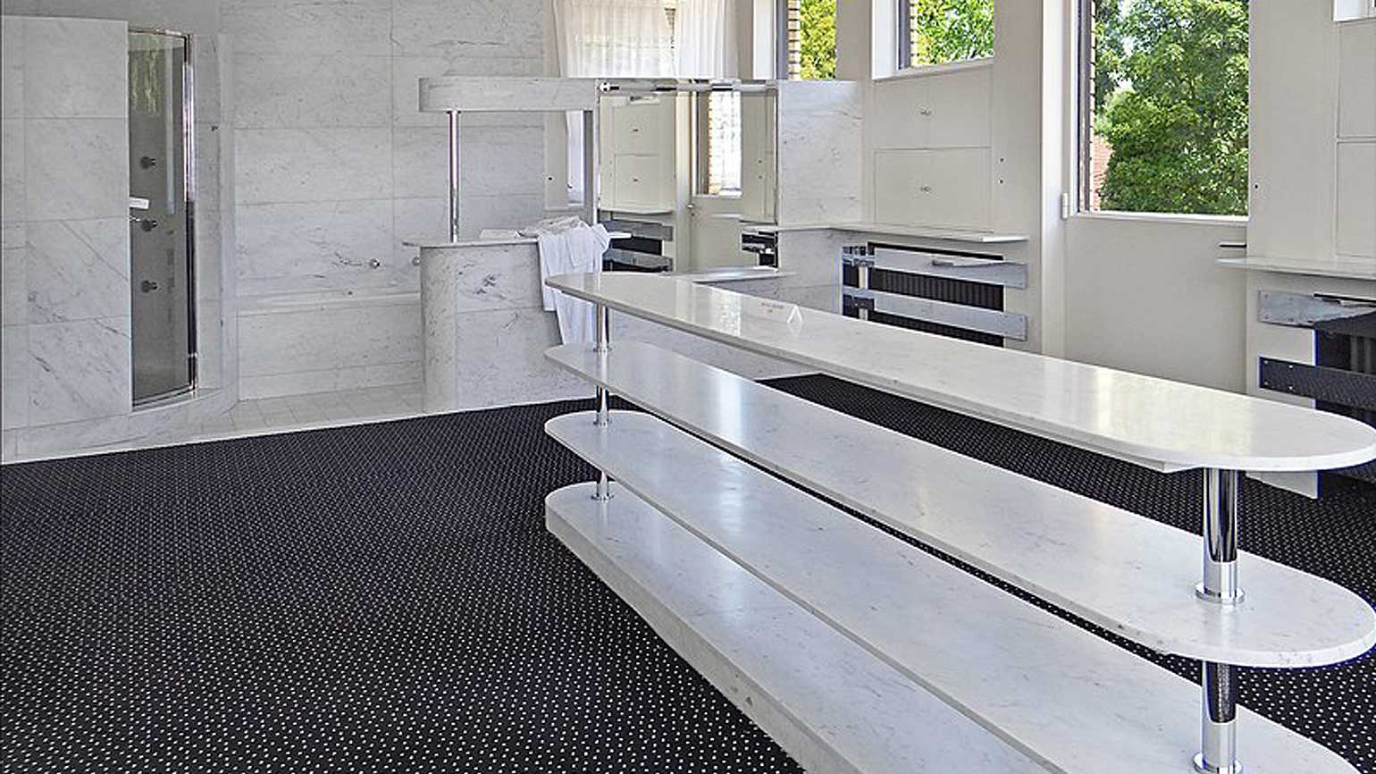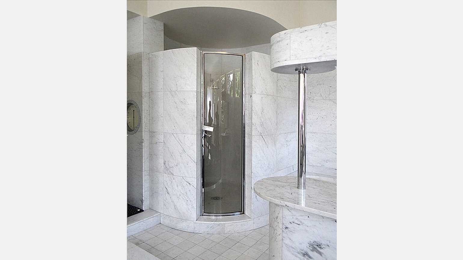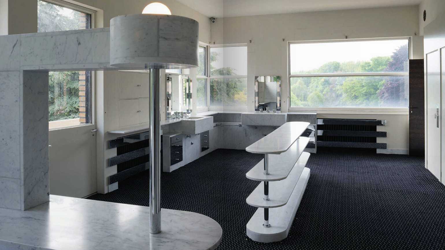 Ванная комната супругов Кавруа. Сочетание белого мрамора и хромированных элементов. Фото: Wikimedia Commons