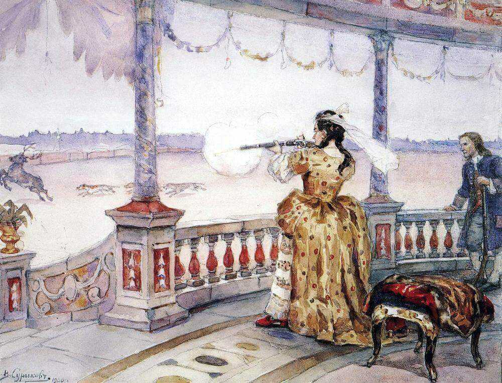 Василий Иванович Суриков «Императрица Анна Иоанновна в петергофском Тампле стреляет оленей»