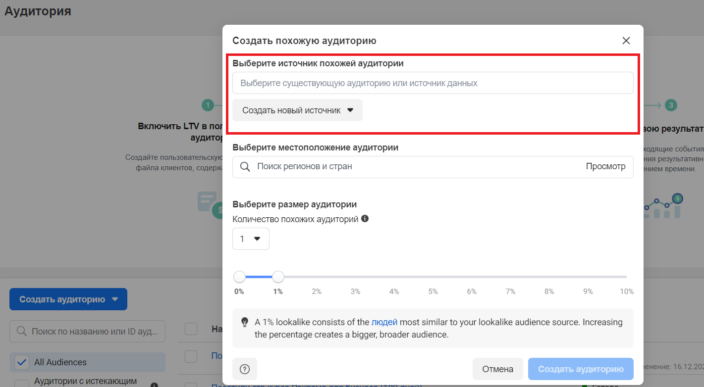 Для создания look-alike нужно быть администратором бизнес-страницы или пикселя, с которых система собирает данные об исходной аудитории.