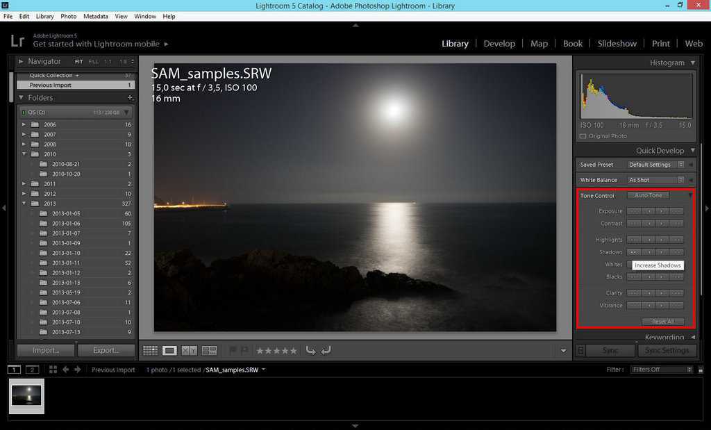 Импорт снимков в Lightroom удобен и прост – достаточно вставить карту памяти в компьютер. Причем, открытие каждого кадра происходит в собственном интерфейсе, а потому работа в Лайтрум с большим количеством отснятого материала становится удобной и понятной. Дальнейший алгоритм: