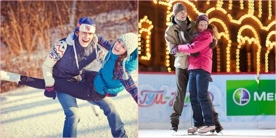 - Каток. Подойдет для пар, которые любят кататься на коньках. Можно даже инсценировать сцену романтического знакомства на катке – фото получатся милыми и трогательными.