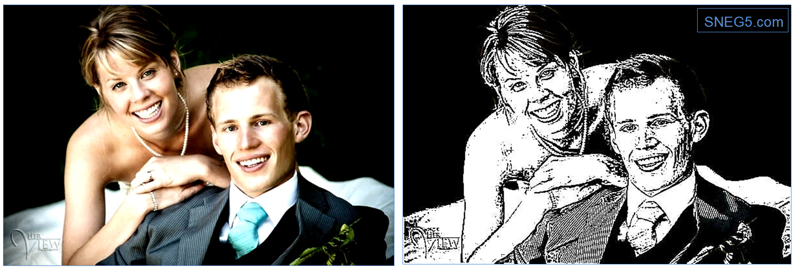 Освещение типа «Петля» (Loop Lighting). Для наглядности на первом фото контрастность увеличена на 50%. Второе фото переведено в штриховое. │ Иллюстрация SNEG5.com