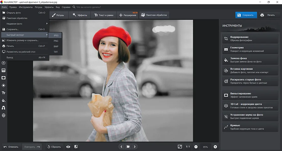 Для качественной и профессиональной обработки медиа лучше воспользоваться компьютерным софтом. Оптимальным решением будет редактор ФотоМАСТЕР. Он позволит быстро перевести кадр в ЧБ, точечно обесцветить материал и применить фильтры. Также вы сможете выполнить ретушь медиаданных, отрегулировать освещение, произвести фотомонтаж и многое другое. Скачайте программу бесплатно и проявите свой творческий потенциал!
