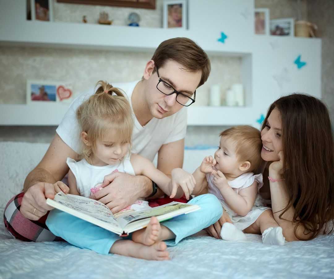 Лучшие фотографии — естественные, когда семья занята своими привычными делами. Вот здесь родители просто смотрят книжку с детьми так же, как делают это в обычный день, а фотография получается очень эмоциональной и трогательной