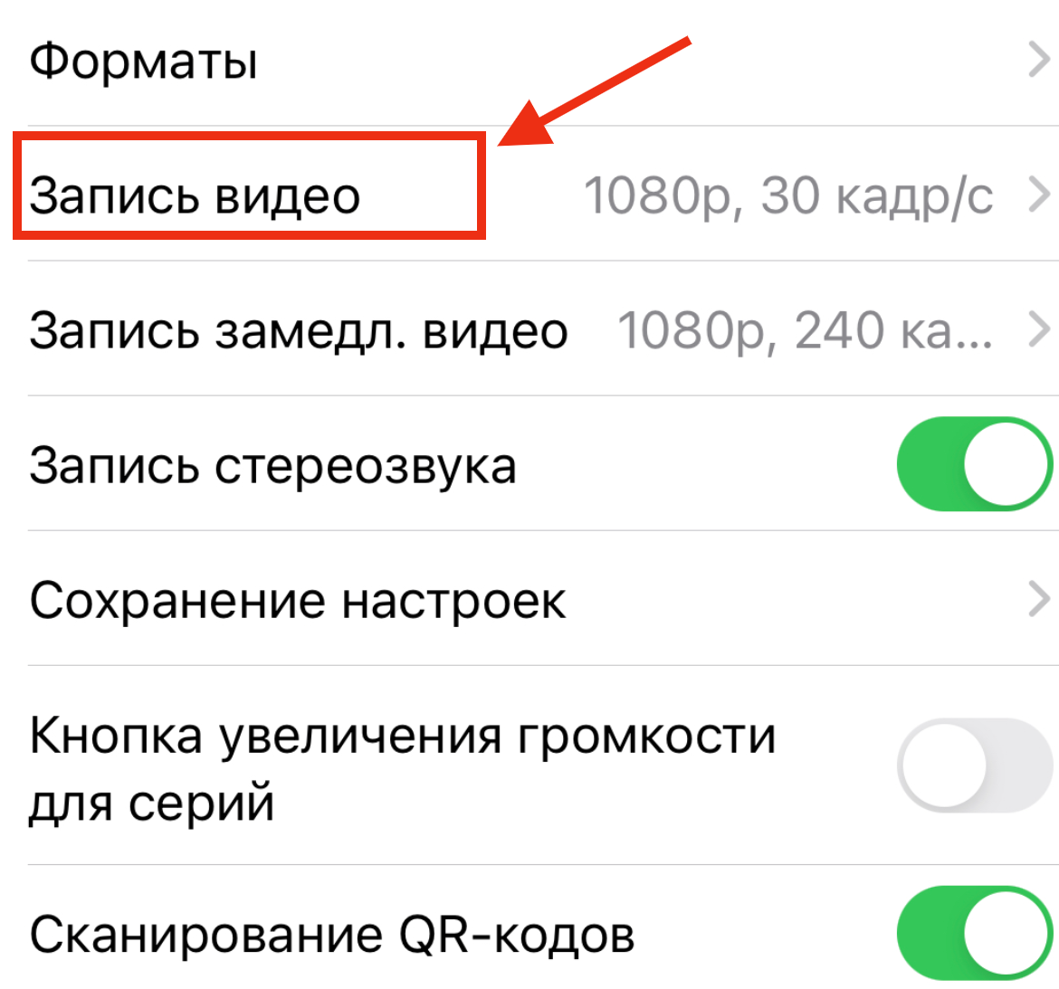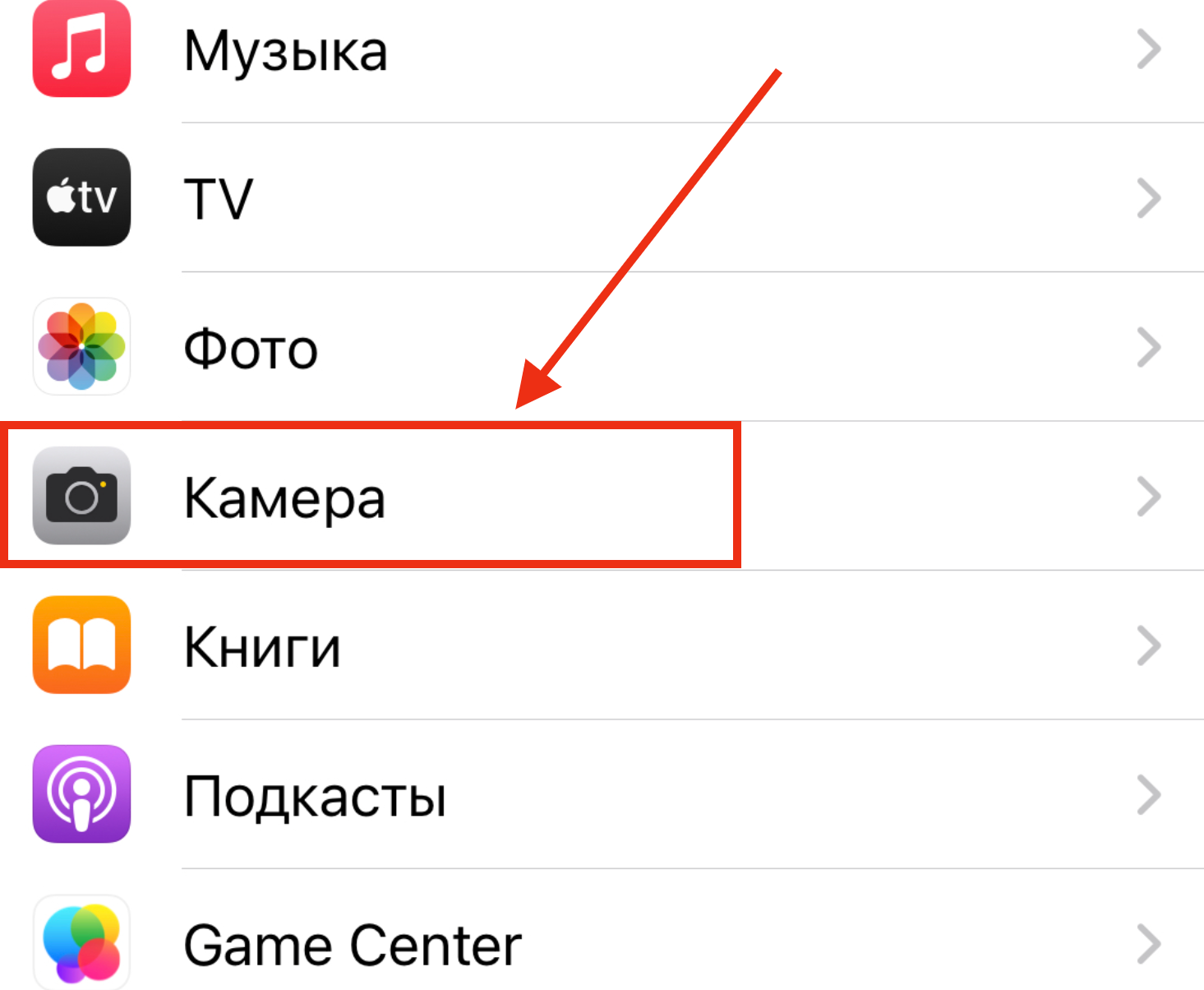 В настройках переходите к «камере»