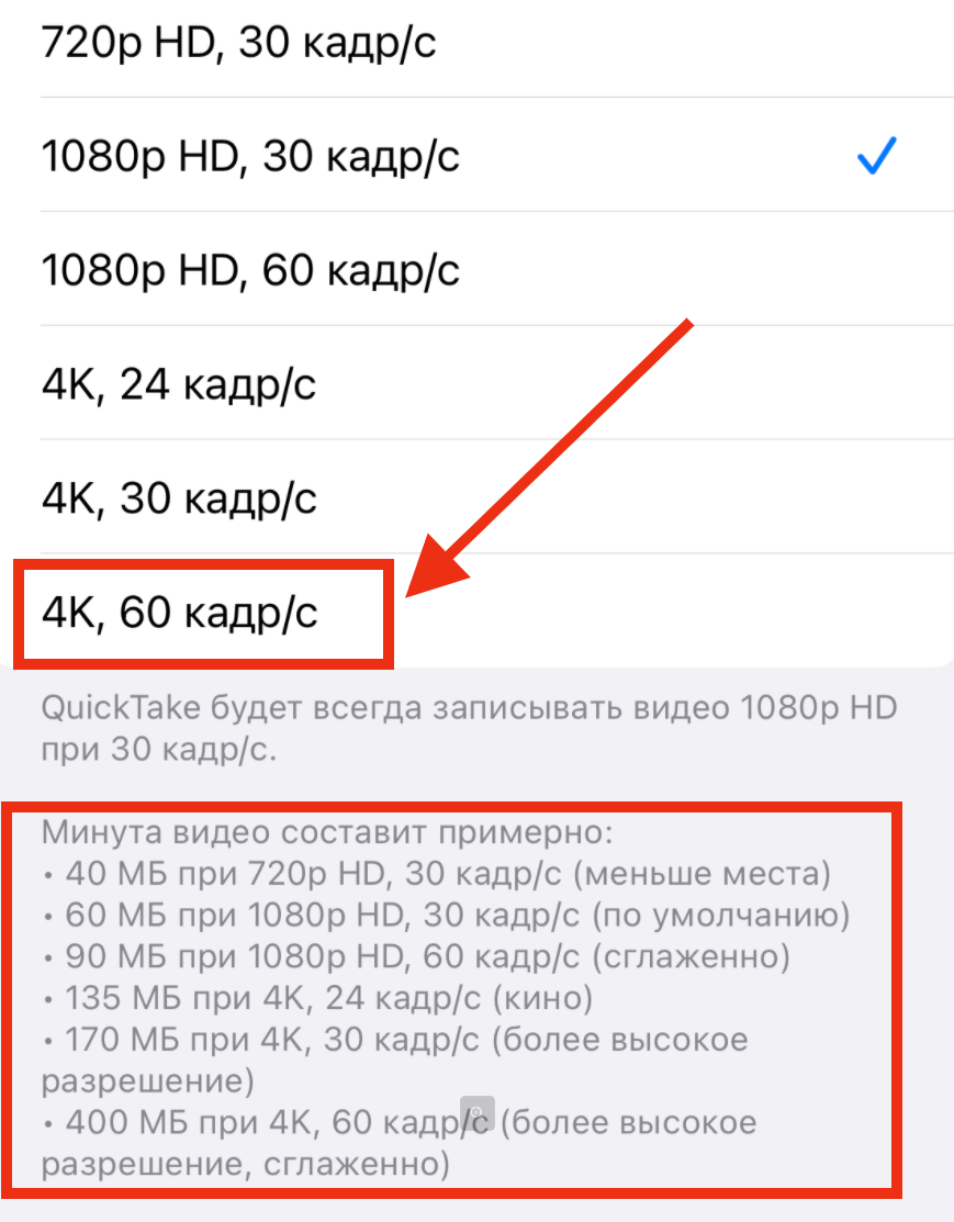 Так как установить качество съемки в 4k ?: