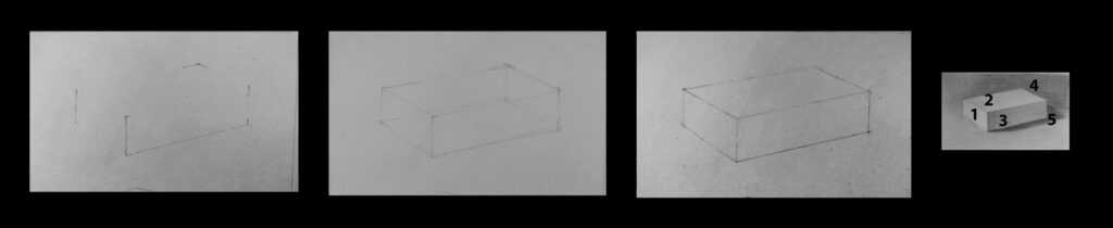 Обратите внимание, что чем ближе к нам, тем темнее тень и тем светлее свет. Белая бумага остается только в самой ближней части самой светлой грани.