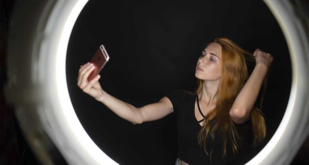 Для съемки людей (прическа, макияж, тату) расстояние до осветителя подбирается индивидуально. Это зависит от света в студии и яркости светодиодов. Среднее расстояние составляет 1-1,5 метра. Не ставьте кольцевую лампу ближе, иначе изображение получится слишком ярким.