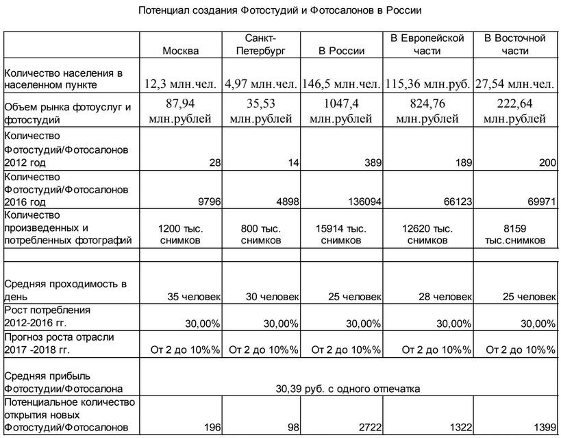Фотосессии актуальны во всех средних и крупных городах России. Но, чем больше город, тем выше и уровень конкуренции. Рассмотрим вариант бизнеса на фотографиях в небольшом городе с населением 80 000 – 100 000.