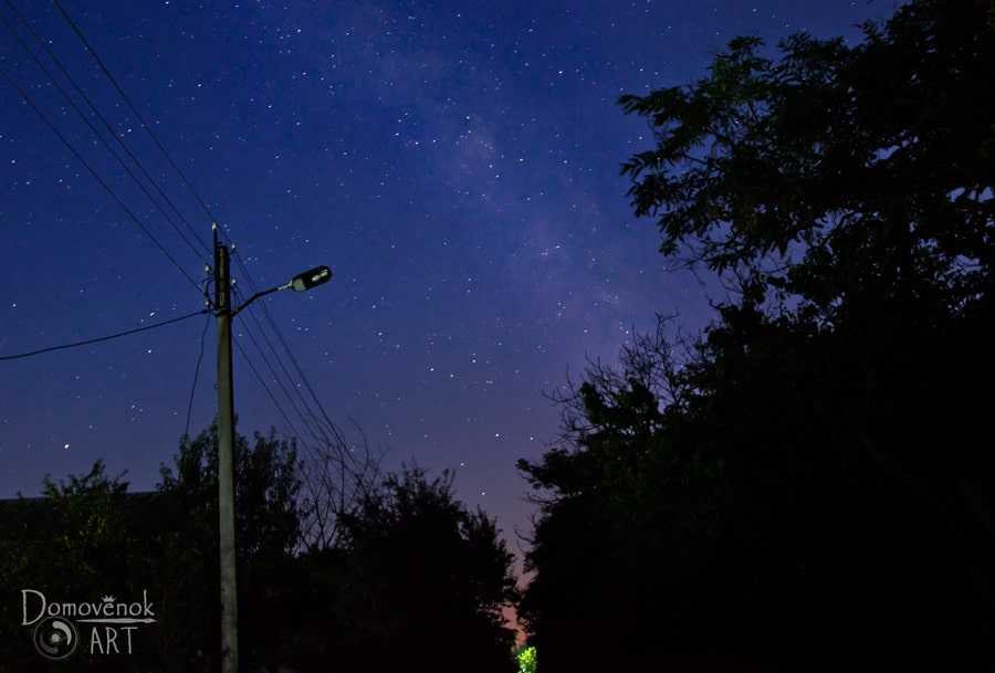 - Лучшее место для съемок — подальше от поселений людей, в особенности городов. Уличное освещение может попросту затмить всю красоту ночного неба.