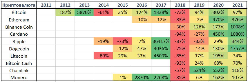 - х2, х3, х4… — действуем жаднее и закрываем позицию, когда доходность достигает несколько сотен процентов (имеет смысл для криптовалют с небольшой капитализацией);