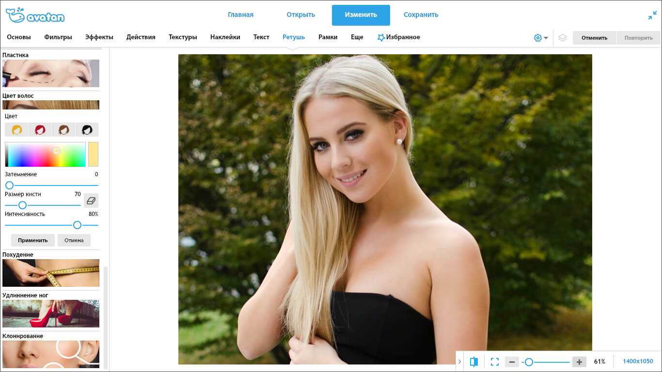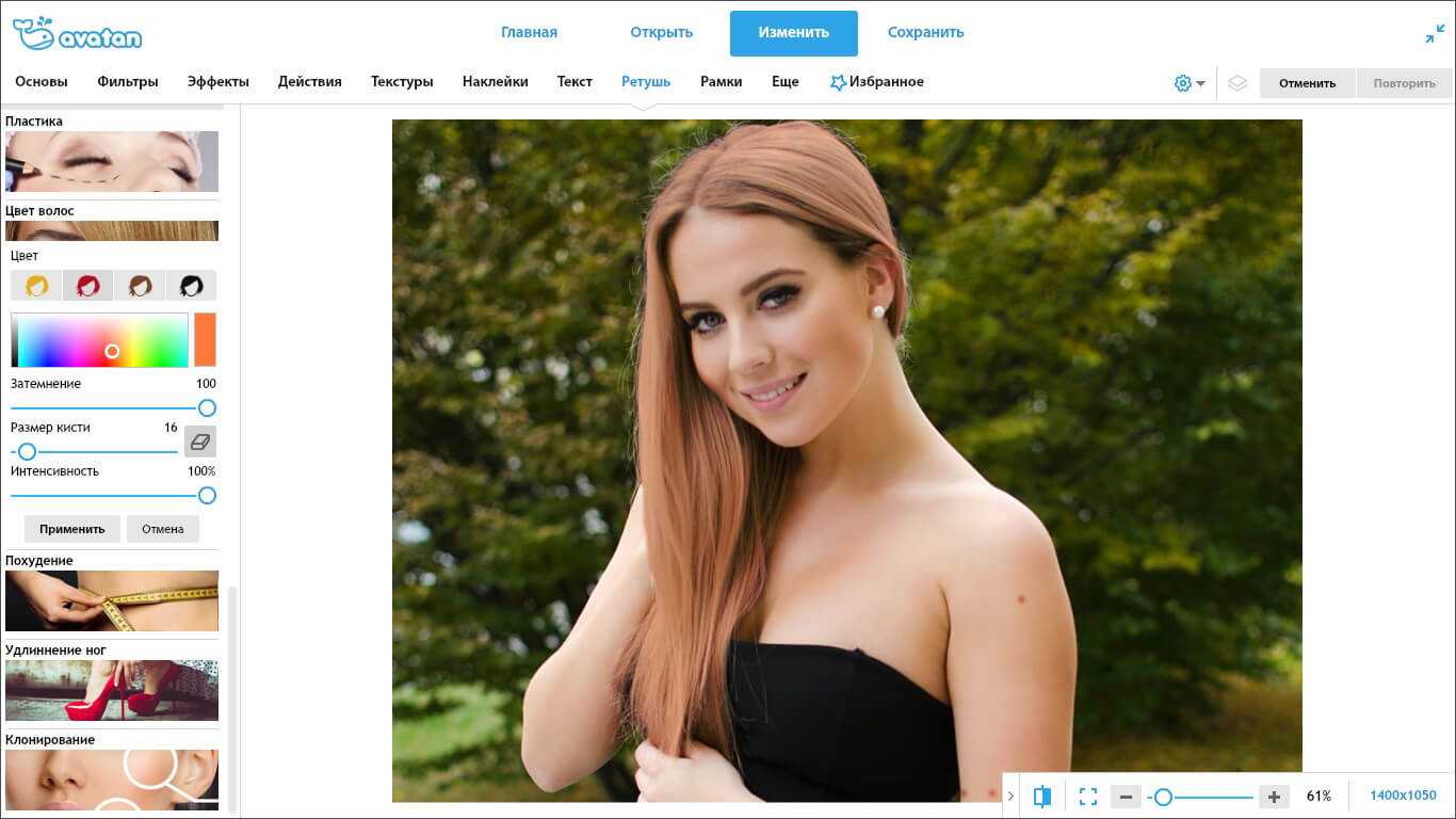 Следует отметить, что на Avatan вы не сможете получить кардинальное преображение, например, из платиновой блондинки в жгучую брюнетку или наоборот.