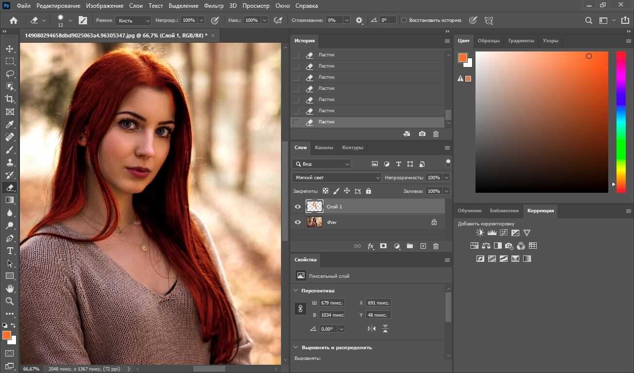 - При помощи ластика можно отменять ранее выполненные действия по замене цвета волос, возвращая все к исходной цветовой гамме.