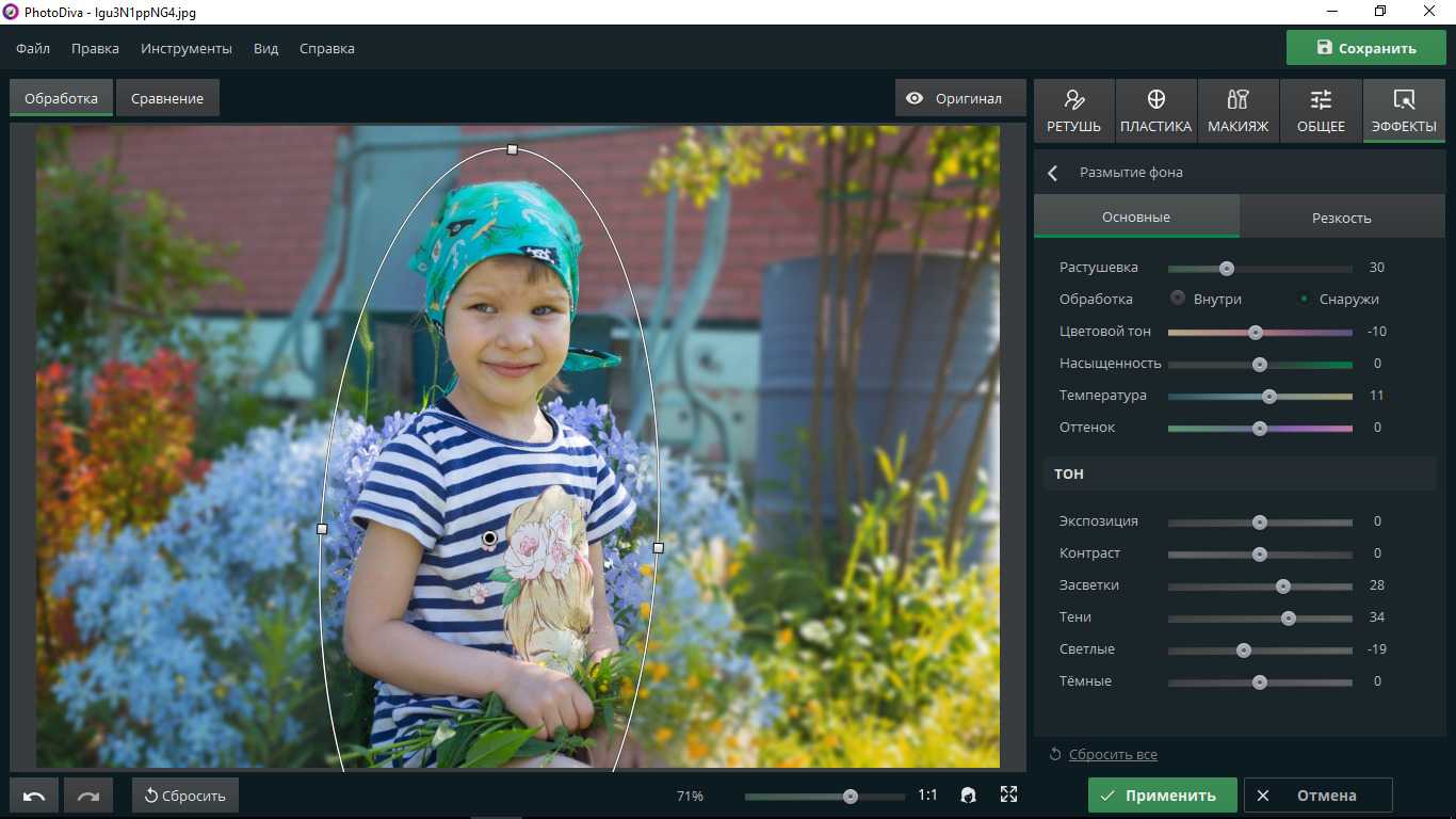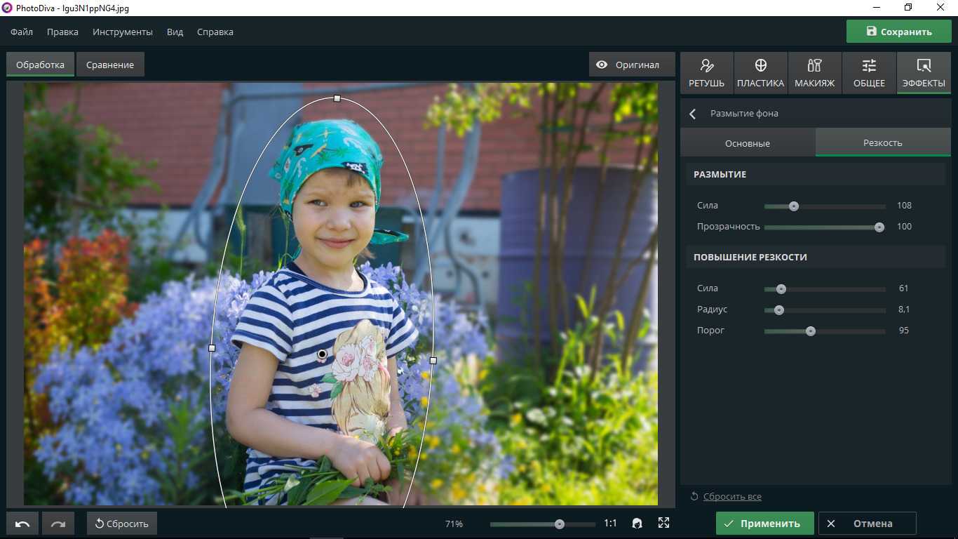 Если благодаря технике «заблюрить» задний план не удалось, то не все потеряно. Исправьте ситуацию, воспользовавшись профильным софтом. PhotoDiva — программа для размытия заднего фона на снимках. С ее помощью вы сможете за пару действий превратить обычную фотографию в произведение искусства.