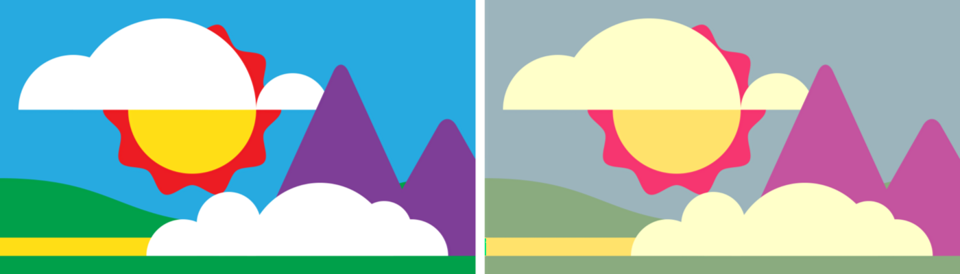 Слева: оригинальное изображение с дефолтной палитрой. Справа: то же изображение после цветокоррекции посредством настройки уровней.