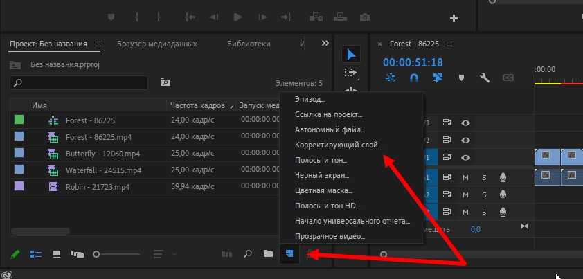 Корректирующие слои — отличный способ добавления эффектов и цветокоррекции к большим частям вашей последовательности. Их можно найти в браузере проекта и добавить на таймлайн так же, как и любой другой клип или мультимедиа. Поскольку корректирующий слой сам по себе является клипом, его можно перемещать, вырезать, отключать или полностью удалять всего за несколько щелчков мышью. Если вы добавили эффект, который вам не нравится, вам нужно только удалить его с корректирующего слоя.