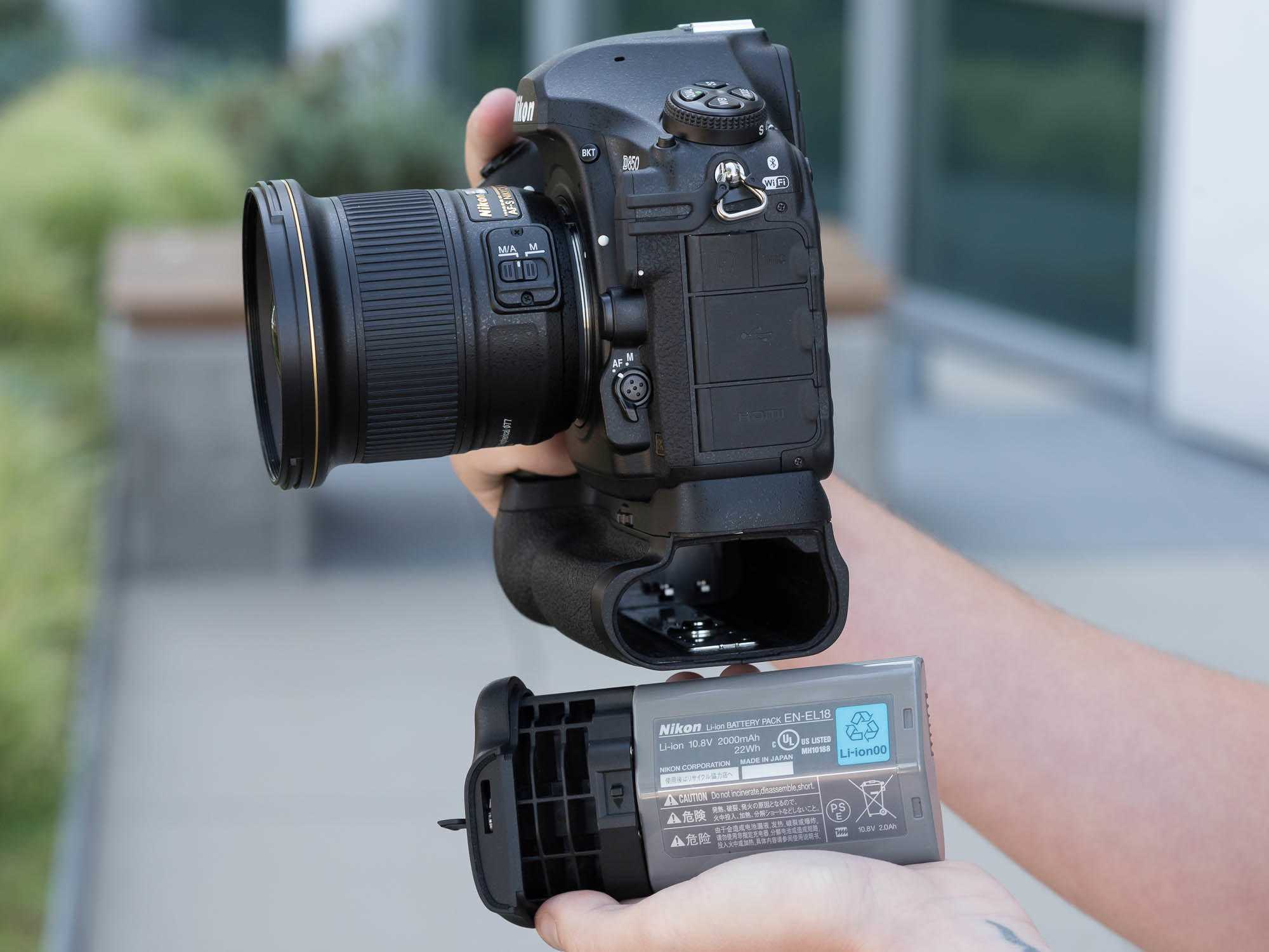 - Видео с разрешением 4K без кроп-фактора: запись полнокадровых видеороликов в формате 4K/UHD с частотой 30p без ограничений, связанных с кроп-фактором. Универсальный батарейный блок MB-D18 позволяет вести съемку больше трех часов.