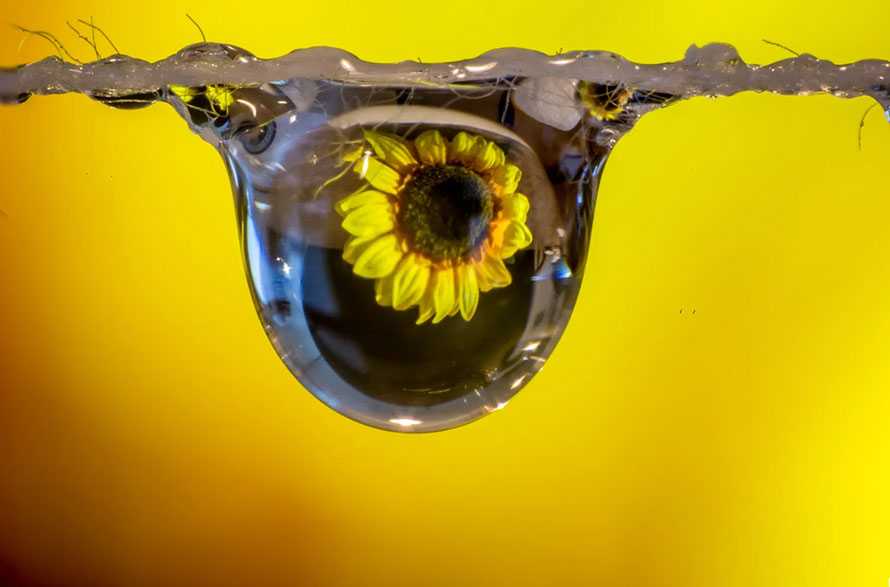 У вас нет специального макрообъектива? Этот экстремальный макрос (ширина капли составляла всего около 2 мм) был снят старым объективом Vivitar 28 мм. Линза была перевернута и объединена с тремя (12 мм, 20 мм и 36 мм). Это также стек фокусировки из двух изображений — один для капли, а другой для цветка внутри. Удлинители на моем Canon 6D. 15 сек обратная линза, ISO 100