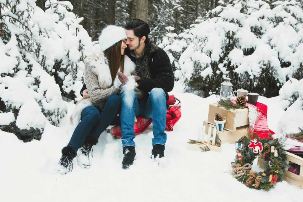 Можно выделить 2 варианта новогодней фотосессии «Лав стори», которые могут стать примером для подражания.