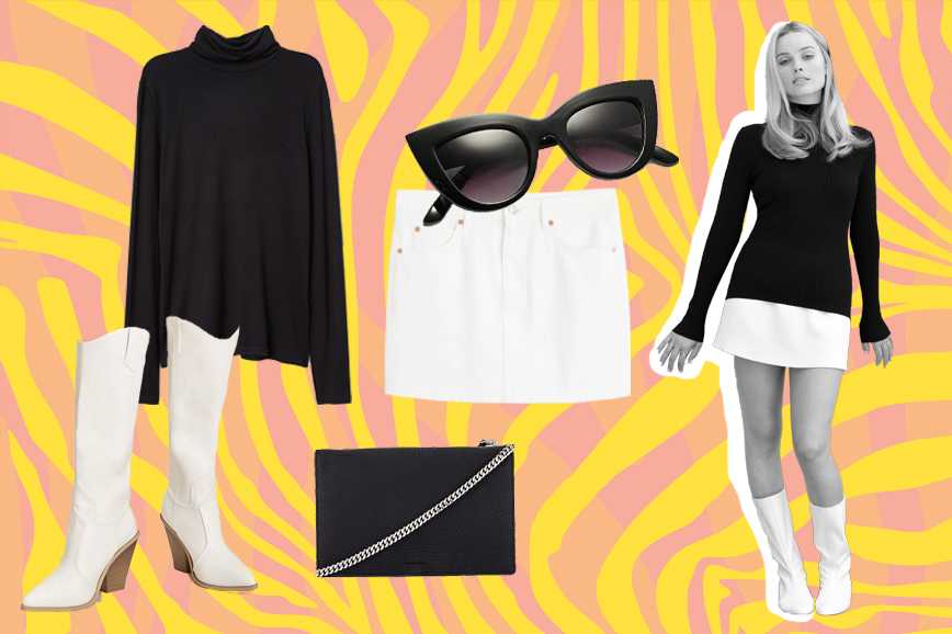 Главная звезда стиля в фильме «Однажды в… Голливуде» — актриса Шэрон Тейт, роль которой исполнила Марго Робби. В её гардеробе много вещей, которые хочется утащить себе — например, длинный кожаный плащ или жёлтые шорты в сочетании с чёрными сапогами. На постерах и позже в фильме Тейт появляется в довольно минималистичном, но чертовски стильном луке: чёрные очки, сумка и водолазка плюс белые мини-юбка и сапоги.