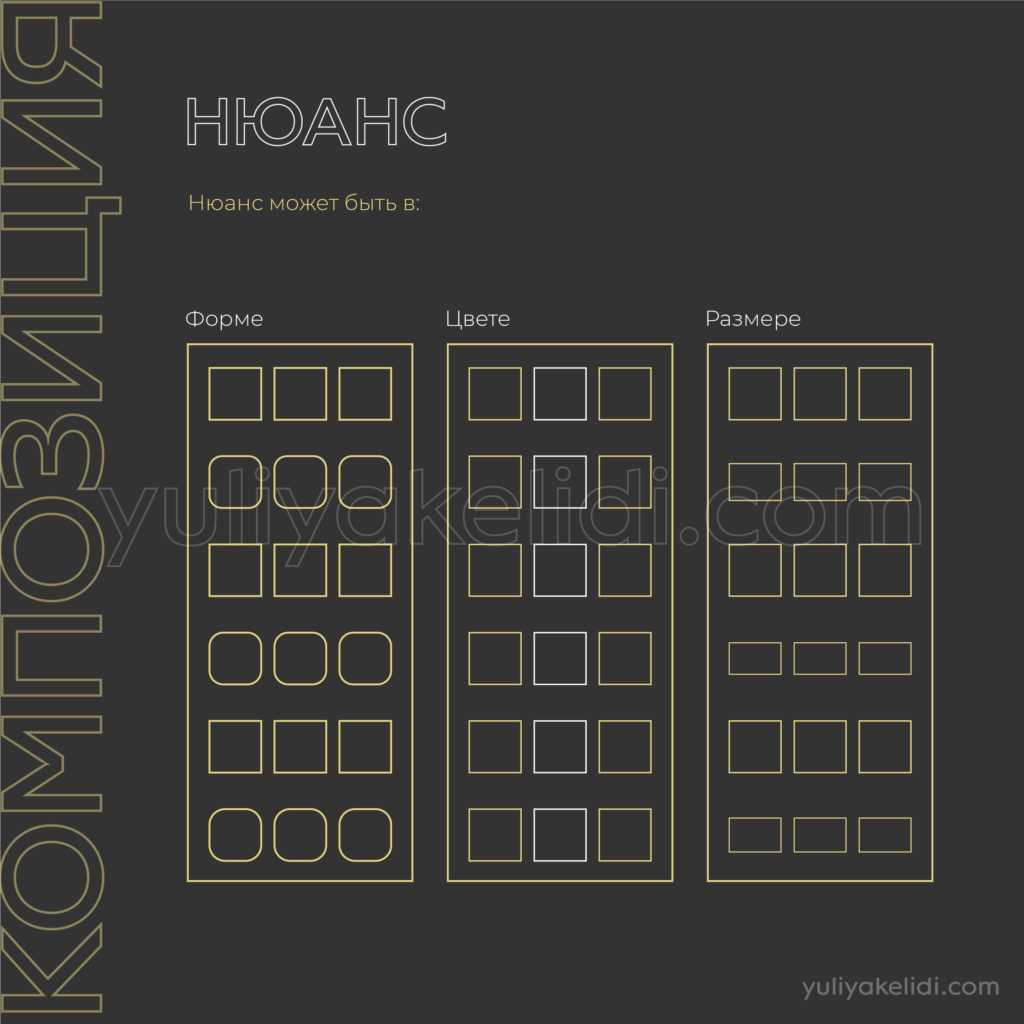 Он вносит легкое разнообразие, разбавляет монотонность и однотипность. Если в дизайне многие свойства будут построены на нюансах, то тогда создастся впечатление единства, целостности. Но если слишком много будет нюансов, без контрастов, то есть вероятность получить пресный и скучный дизайн.