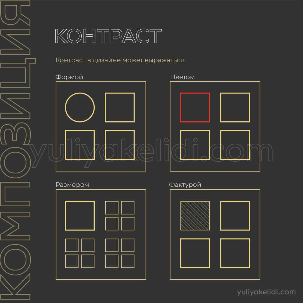 Контраст — четко выраженная разница любого качества на грани противопоставления.