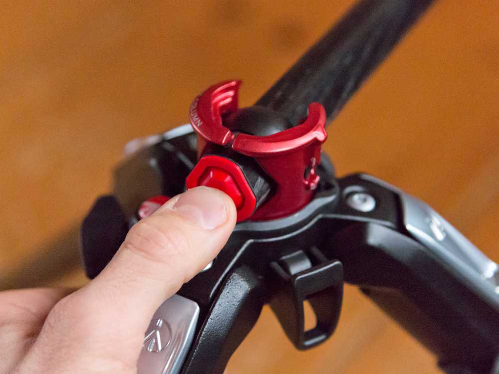 Manfrotto также оборудован новыми ногами, способными поворачиваться под разными углами. Для поворота стойки в нужное положение необходимо открыть фиксатор и повернуть стойку в нужное положение. Существует четыре положения, каждое из которых соответствует разным углам. Для удобного поворота ножки стоит держать руку ближе к центру секции, так, стойка будет поворачиваться быстрее и плавне. На ногах расположены резиновые наконечники, предотвращающие скольжение штатива.