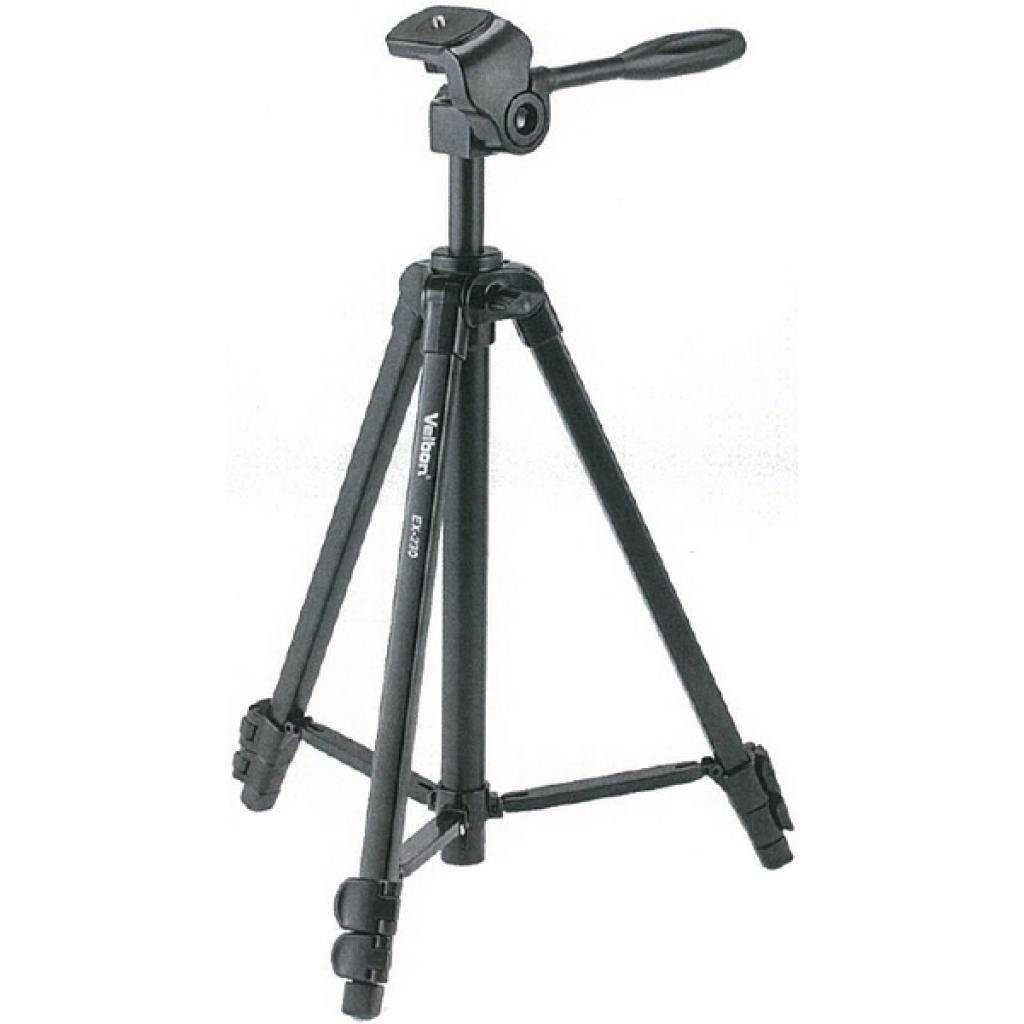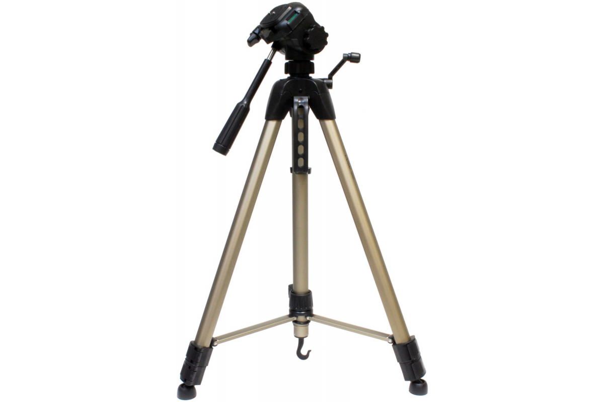 Трипод с 3D-головкой. Высота составляет от 66 до 166 см. Ножки состоят из трех секций, каждая фиксируется зажимом из пластика. Модель выдерживает до 4 кг, есть крючок для крепления груза. Сам штатив весит чуть меньше 2 кг – это типичный уровень для алюминиевого инструмента таких размеров. Головка несъемная, но это сложно считать минусом при такой стоимости. Идеальное решение для использования в паре с не самой тяжелой камерой. Профессиональная зеркалка с солидной оптикой не будет устойчива на треноге.