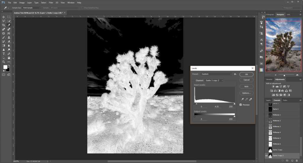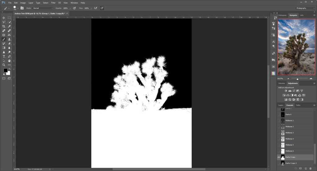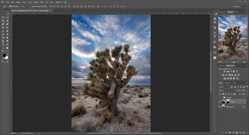 Это – самая сложная техника. Она обычно приводит либо к катастрофическим результатам, либо к идеальному смешиванию. Наилучший пример – снимок юкки коротколистной, который я сделал ранее в этом году. До того как я научился работать с масками свечения, выделить такое дерево было почти невозможно из-за его шипастых листьев и пространства между ветками, через которое виден фон.