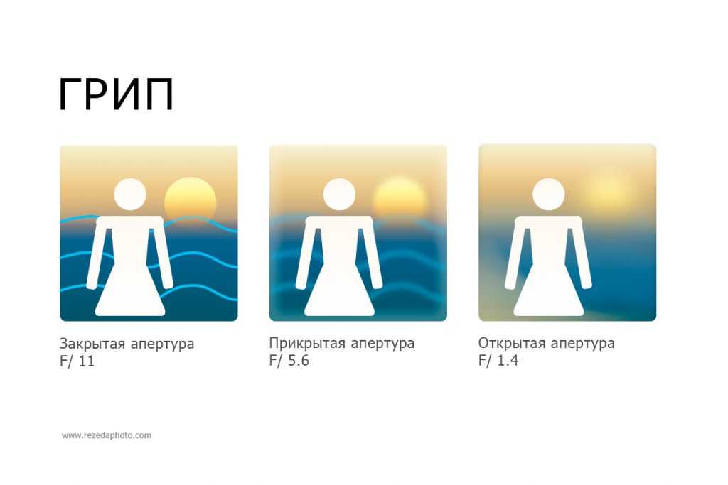 Всё довольно просто, чем больше апертура, тем больше объект, находящийся в фокус будет отделён от фона и тем очевиднее боке (хотя это зависит от расстояния модели от фона и места камеры), то есть объект или его фрагмент будут чёткими, а всё остальное — размыто. Тут мы заходит на территорию термина ГРИП (об этом я напишу в следующей статье, а пока разберёмся с апертурой).