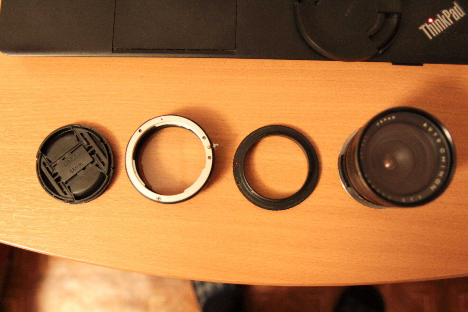 - Осталось закрепить Гелиос в байонете камеры. Для этого придётся использовать переходник М42. Также переходник можно сделать самостоятельно из крышки для байонета.