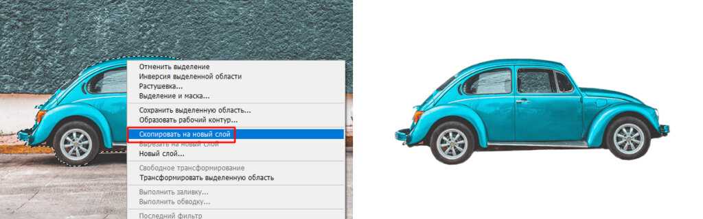 Затем применяем функцию «Скопировать на новый слой» и получаем машину без фона.