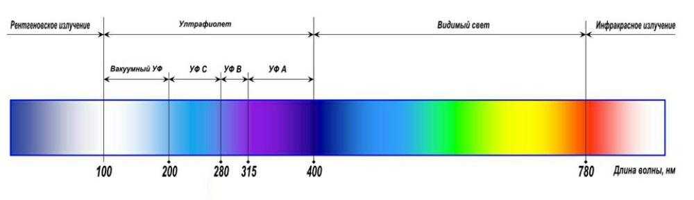 Ультрафиолетовый свет, который направляется на Землю благодаря Солнцу и электромагнитному спектру, бывает трех основных видов: ультрафиолет А (UVA) с длиной волны от 315 до 400 нанометров, ультрафиолет B (UVB) от 280 до 315 нанометров и ультрафиолет С (UVC) от 100 до 280 нанометров.