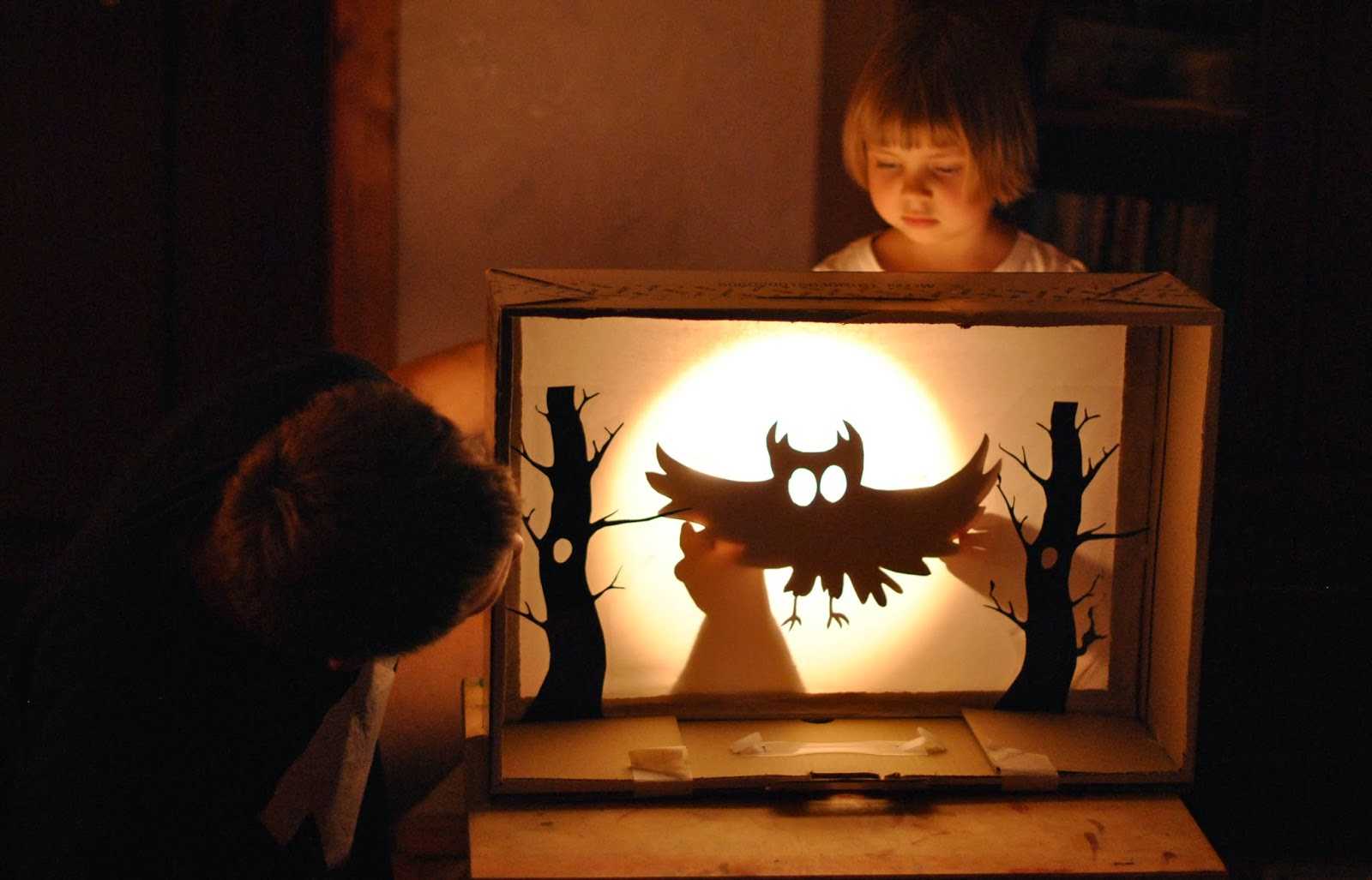 Большое количество фигур животных крайне сложно изобразить с помощью рук. Теневой театр для детей можно разнообразить с помощью «актёров» из бумаги. С такими фигурками можно ставить сложные пьесы по сказкам, басням и рассказам. Представление получится, если несколько человек будут читать текст (по ролям), а ещё несколько – показывать на экране иллюстрации к произведению.