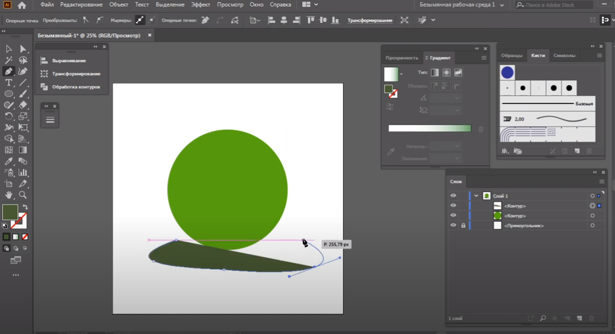 Второй способ заключается в том, что вам нужно будет скопировать ваш объект (в нашем случае круг) и поместить его под объект текущий, перекрасив его в цвет тени. Вот, как это делается.
