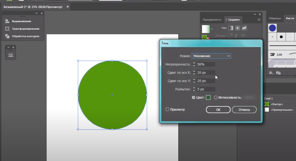 У вас откроется маленькая табличка, в которой вы и сможете настроить тень для вашего круга.