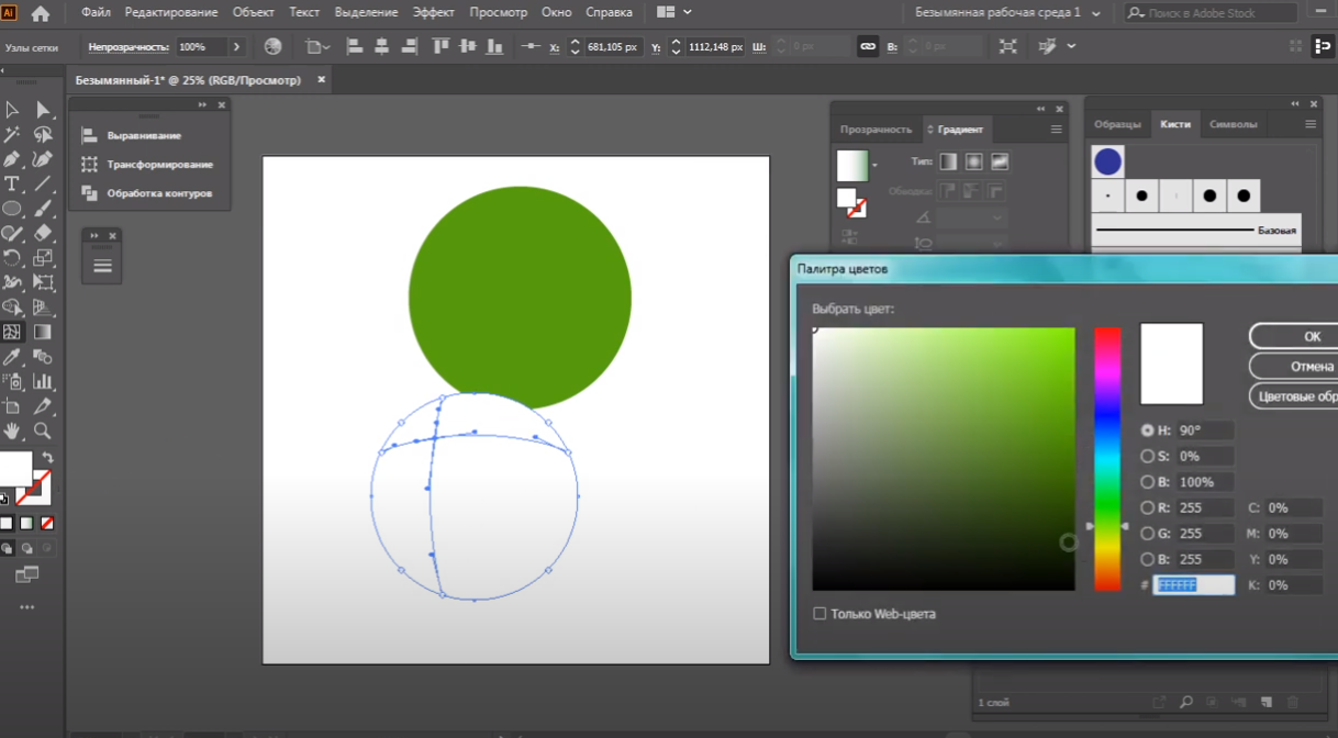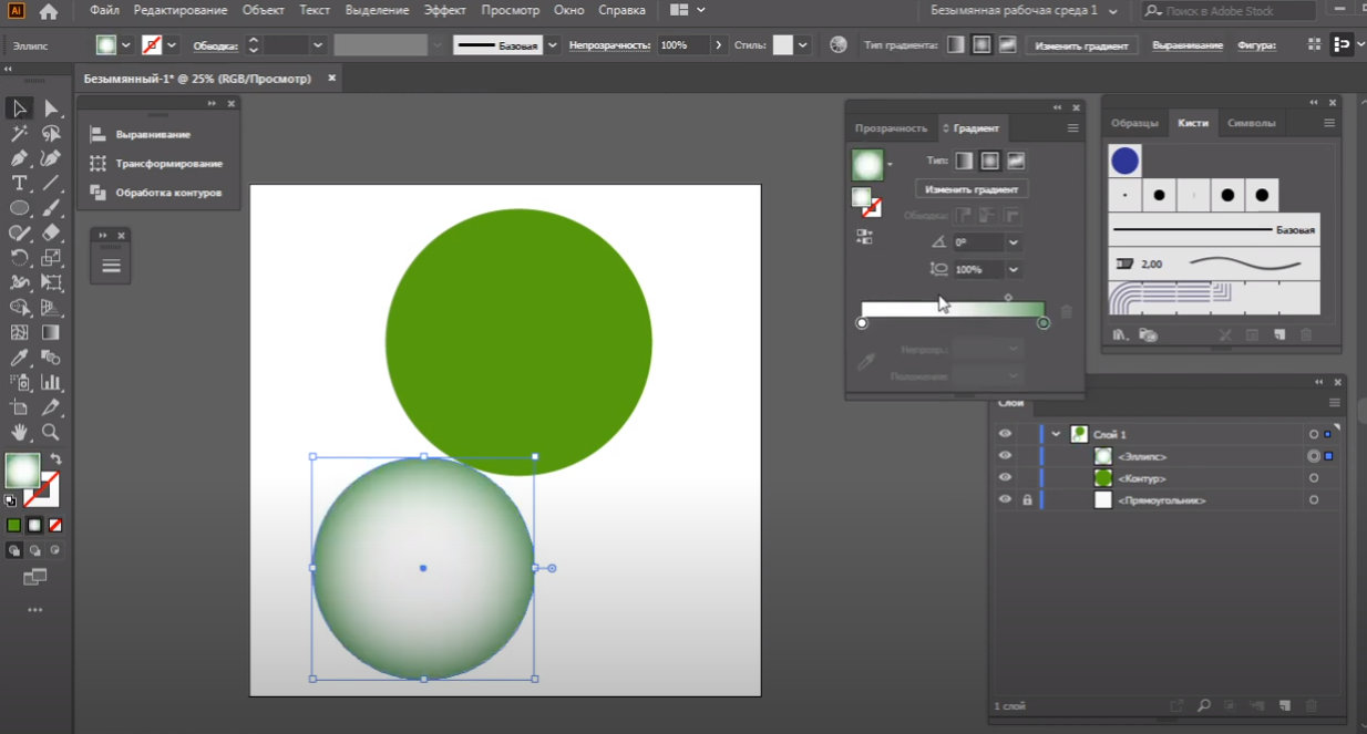 Выбираем цвет нижнего объекта (что-то потемнее) и получаем примерно такой же эффект, как и в первом способе. Это уже намного лучше, т.к. так вы сможете сохранить векторность картинки.