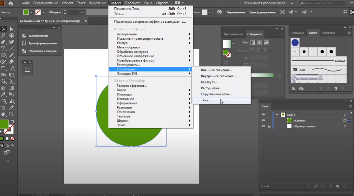 Для этого вам нужно будет найти пункт «эффекты», расположенный на верхней панели. Кликните по нему, выберите пункт «стилизация» и «тень».