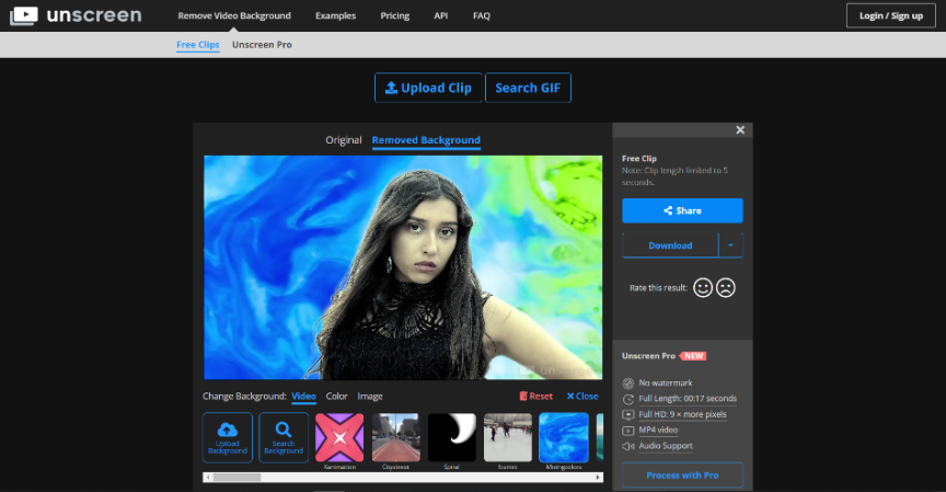 - в качестве замены заднего плана используются только статические изображения, то есть видеоклип будет на фоне фото;