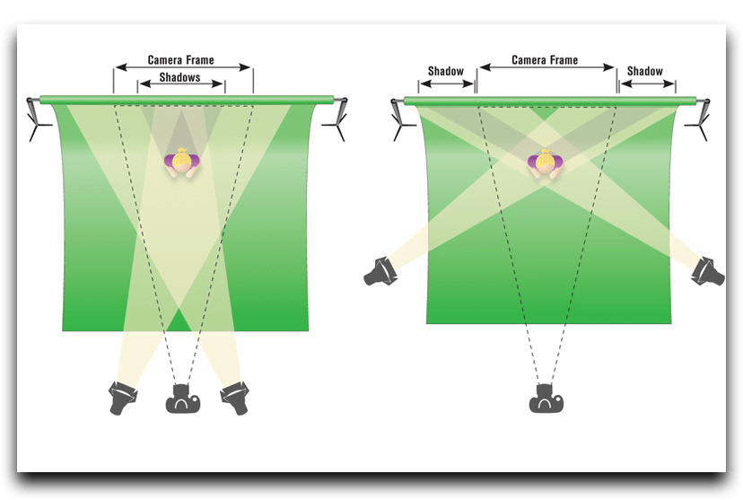Одна из наиболее чётких иллюстраций освещения для съёмок с зелёным экраном была опубликована в онлайн-журнале Videomaker. Приводим её ниже для наглядности.
